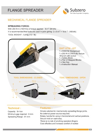 FLANGE SPREADER MECHANICAL FLANGE SPREADER SWT 9TM - KIT Wrench with socket 98