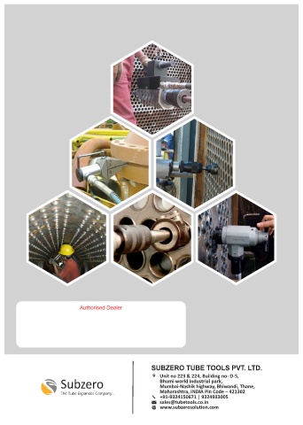 Unit no 223 & 224, Building no- D-5, Bhumi world industrial park, Mumbai-Nashik highway, Bhiwandi, Thane, Maharashtra, INDIA Pin Code – 421302 +91-9324150671 | 9324933005 99 sales@tubetools.co.in www.subzerosolu on.com