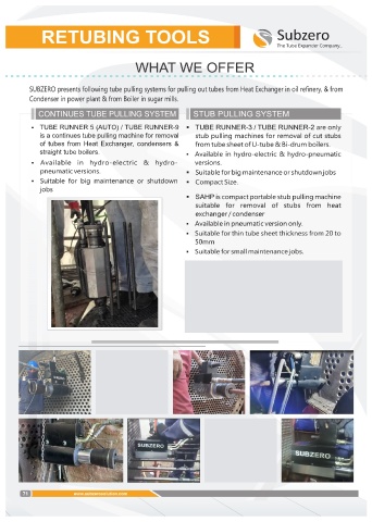 TUBE RUNNER 5 (AUTO) / TUBE RUNNER-9 is a continues tube pulling machine for removal of tubes from Heat Exchanger, condensers & straight tube boilers. 71 71